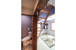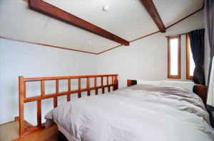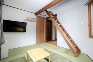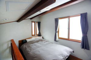 The room is for 1-4 persons, 2 semi-single beds [in the loft] + 3 futons.