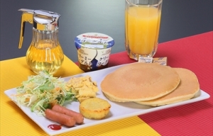 Pancakes(2) (with margarine & hony & strawberry jam & blueberry